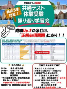 【新高3会員対象】共通テスト体験受験 振り返り学習会のお知らせ